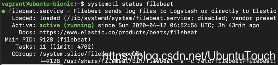 上面是我的配置情况。如果你已经配置安全,你需要设置 username 及 password。否则你不需要做任何配置。你可以根据自己的实际的 IP 地址进行配置。当我们成功地启动 filebeat 服务后,我们可以通过如下的命令来检查我们的服务是否已经成功运行: