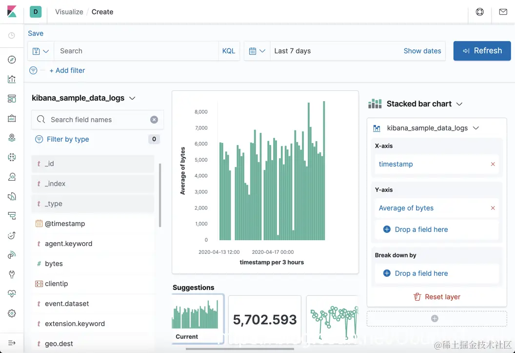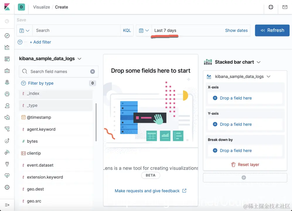 在没有Lens之前,如果我们想做一个很有意义的可视化图,但是在没有Elasticsearch aggregation的基本知识,很难做出很漂亮的统计图表。