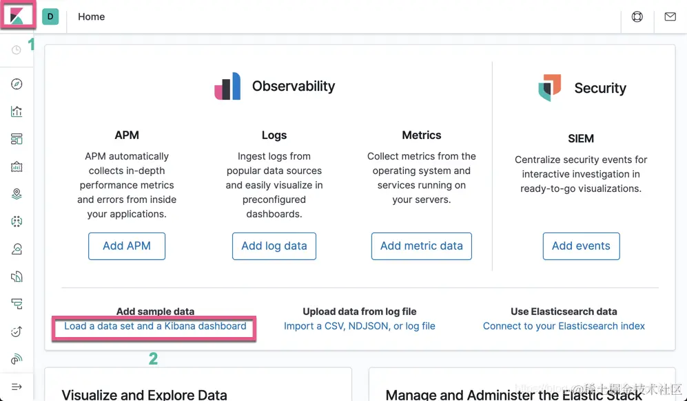 我们点击上面的“Load a data set and a Kibana dashboard”链接: