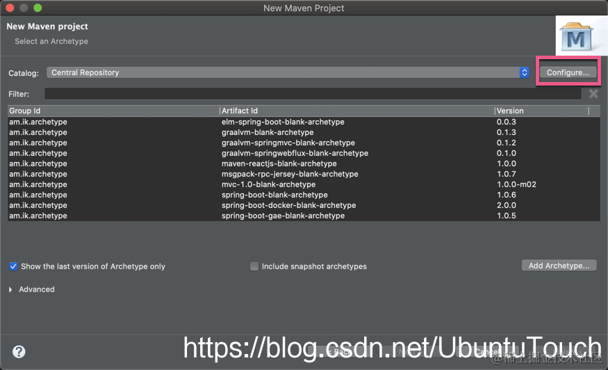 如果你还没配置好你的catalog的话,那么你可以点击上面的Configure: