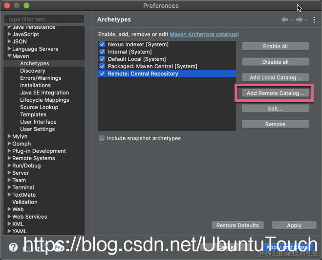 我们点击Add Remote Catalog,并添加如下的一个catalog repo1.maven.org/maven2/: