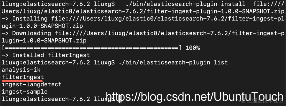 ./bin/elasticsearch-plugin install file:Users/liuxg/elastic0/elasticsearch-7.6.2/filter-ingest-plugin-1.0.0-SNAPSHOT.zip