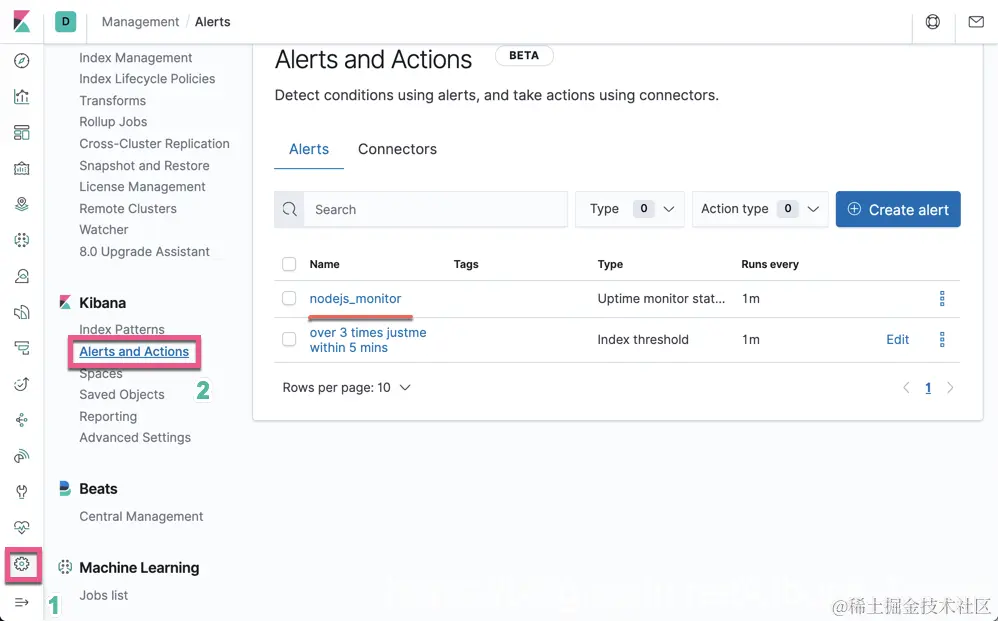 这样我们就创建了我们的 Uptime Alert。我们可以到 Alerts and Actions 里进行查看: