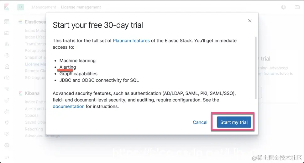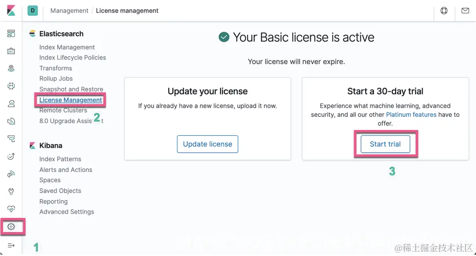 在这节里,我们将介绍如何使用 Elastic 提供的警报功能发送一个警报。打开 Kibaba: