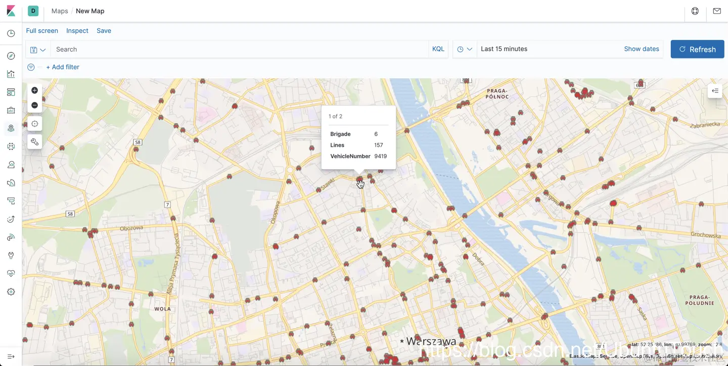 你是否考虑分析和可视化地理数据? 为什么不尝试 Elastic Stack? 也就是所谓的 ELK(Elasticsearch + Logstash + Kibana)或Elatic Stack 不仅是NoSQL数据库。 它是一个整体系统,可以实时存储,搜索,分析和可视化来自任何来源的数据。 在这种情况下,我们将使用有关华沙公共交通位置的开放数据。
