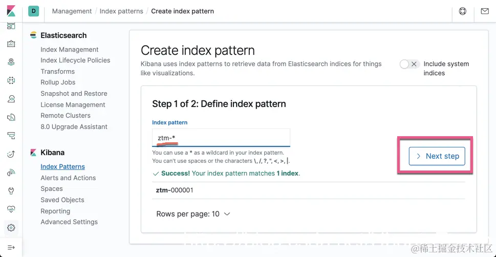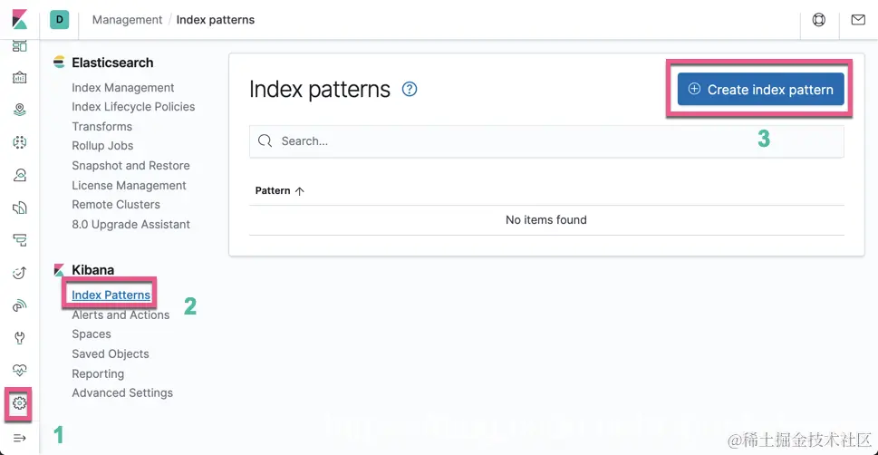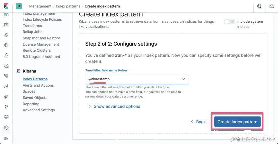 点击 Create index pattern: