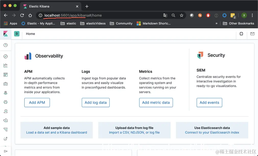 我们在浏览器的地址栏中输入地址 http://localhost:5601