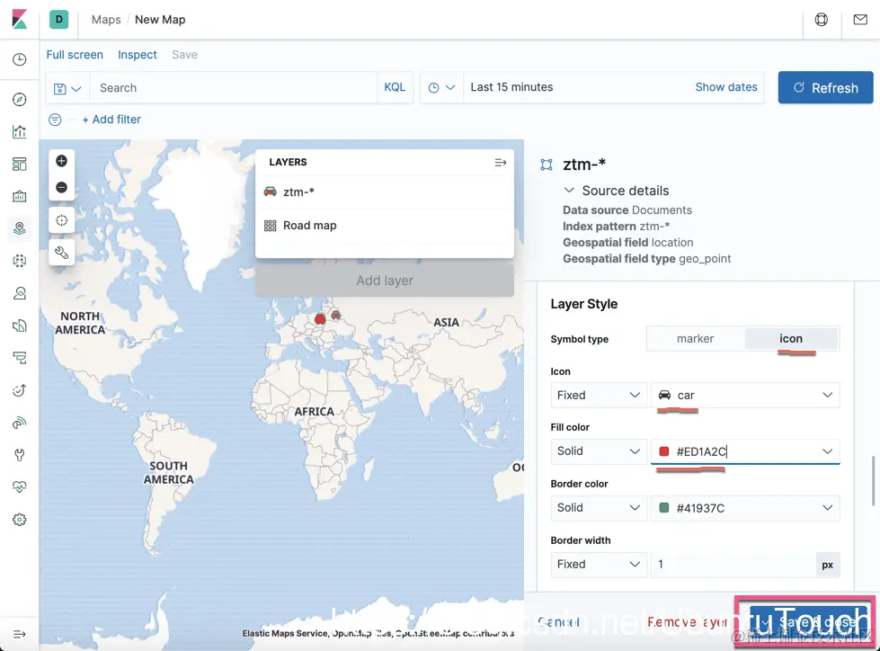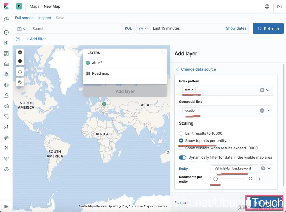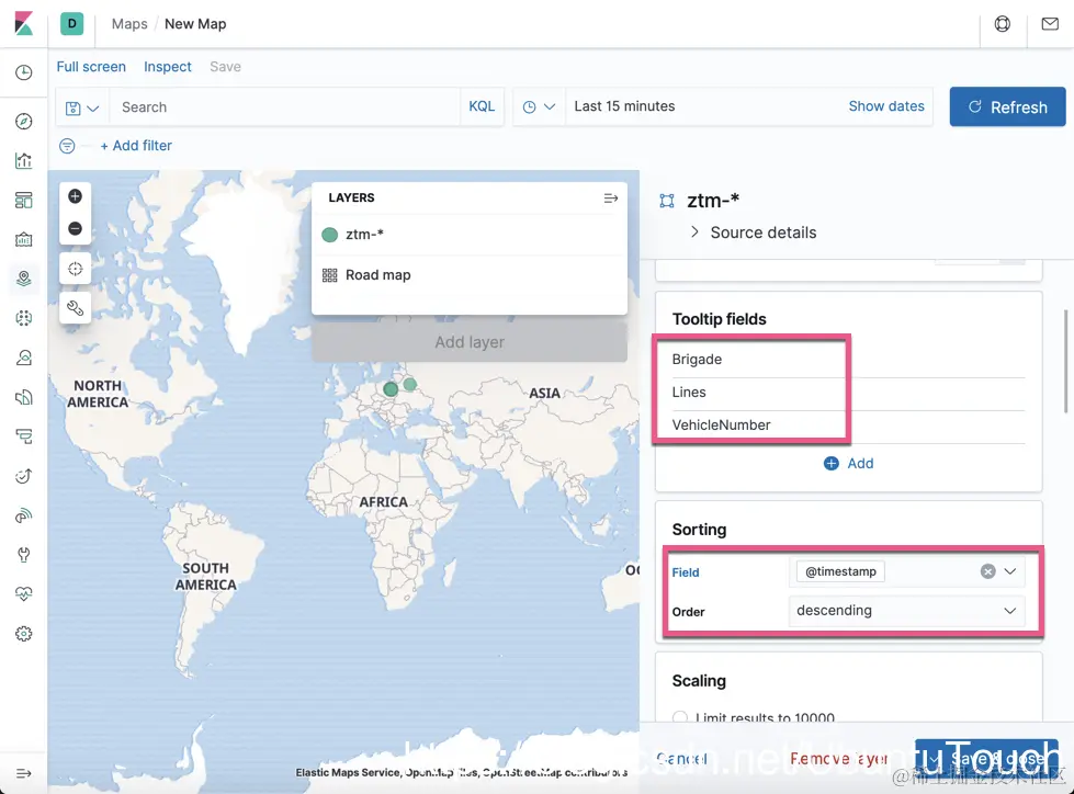 你还需要一个模板,该模板具有 ztm_policy 将连接到的适当 mapping。 如果没有 mapping,Elasticsearch 将不会猜测到 location 字段为 geo_point 的数据类型,并且时间字段将是纯文本。