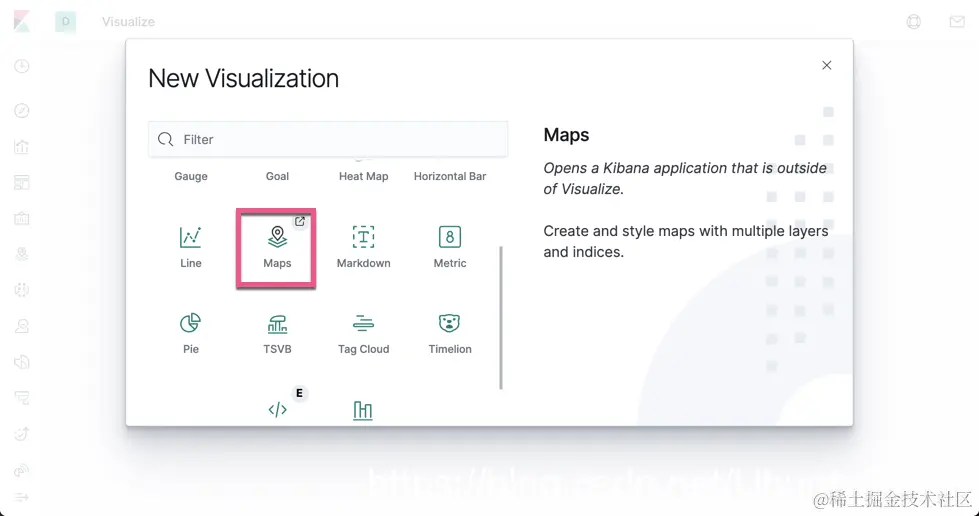 点击上面的 Create new visualization: