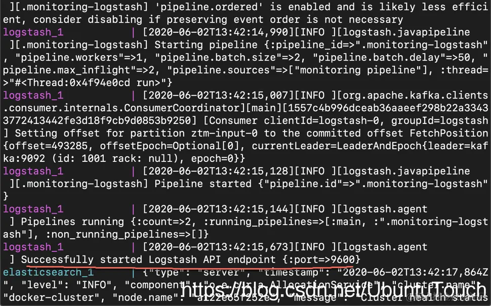 从上面我们可以看出来 Logstash 已经被成功地启动。