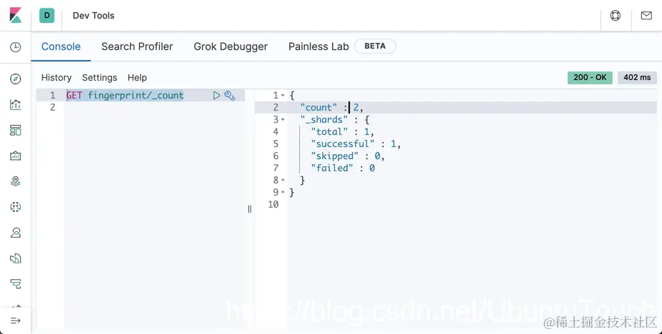 那么我们重新查看 fingerprint 索引的文档数: