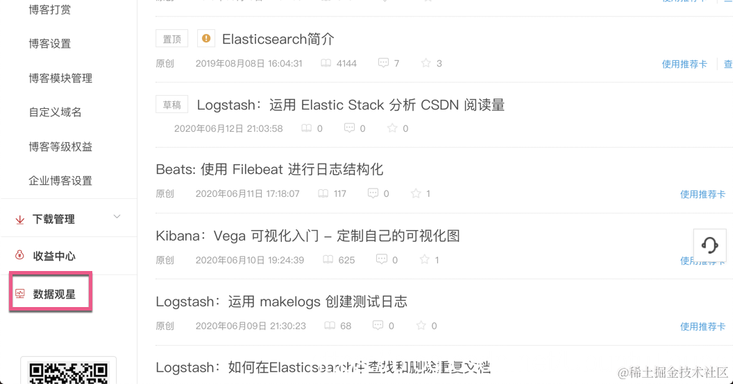 我们知道目前 CSDN 提供一个月的统计数据。我们可以在如下的地方找到: