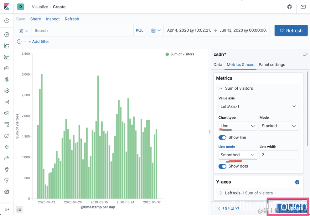 点击 Update。显然,上面的两个数据在一起共有一个 Y 轴,数据显示的不好看。