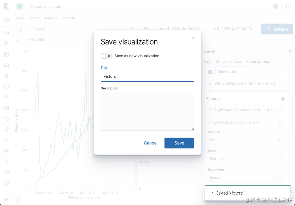 我们把这个 Visualization 保存为 visitors。