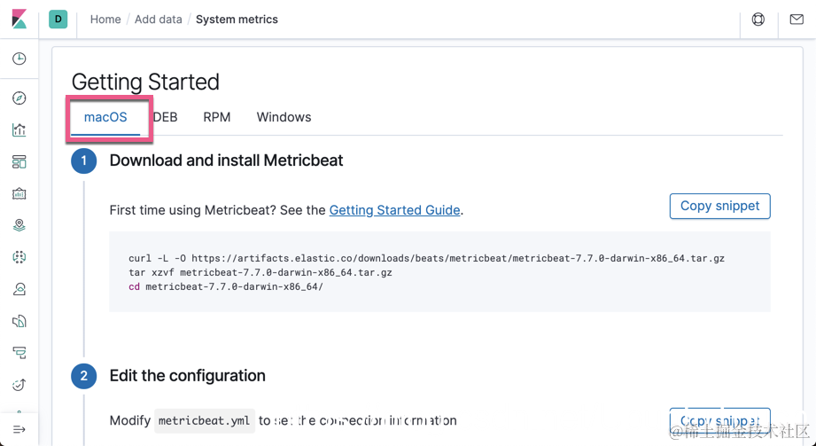 然后根据自己的平台来进行安装。我们需要对 merticbeat.yml 进行修改。