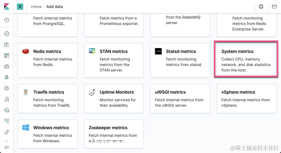 选择 System metrics