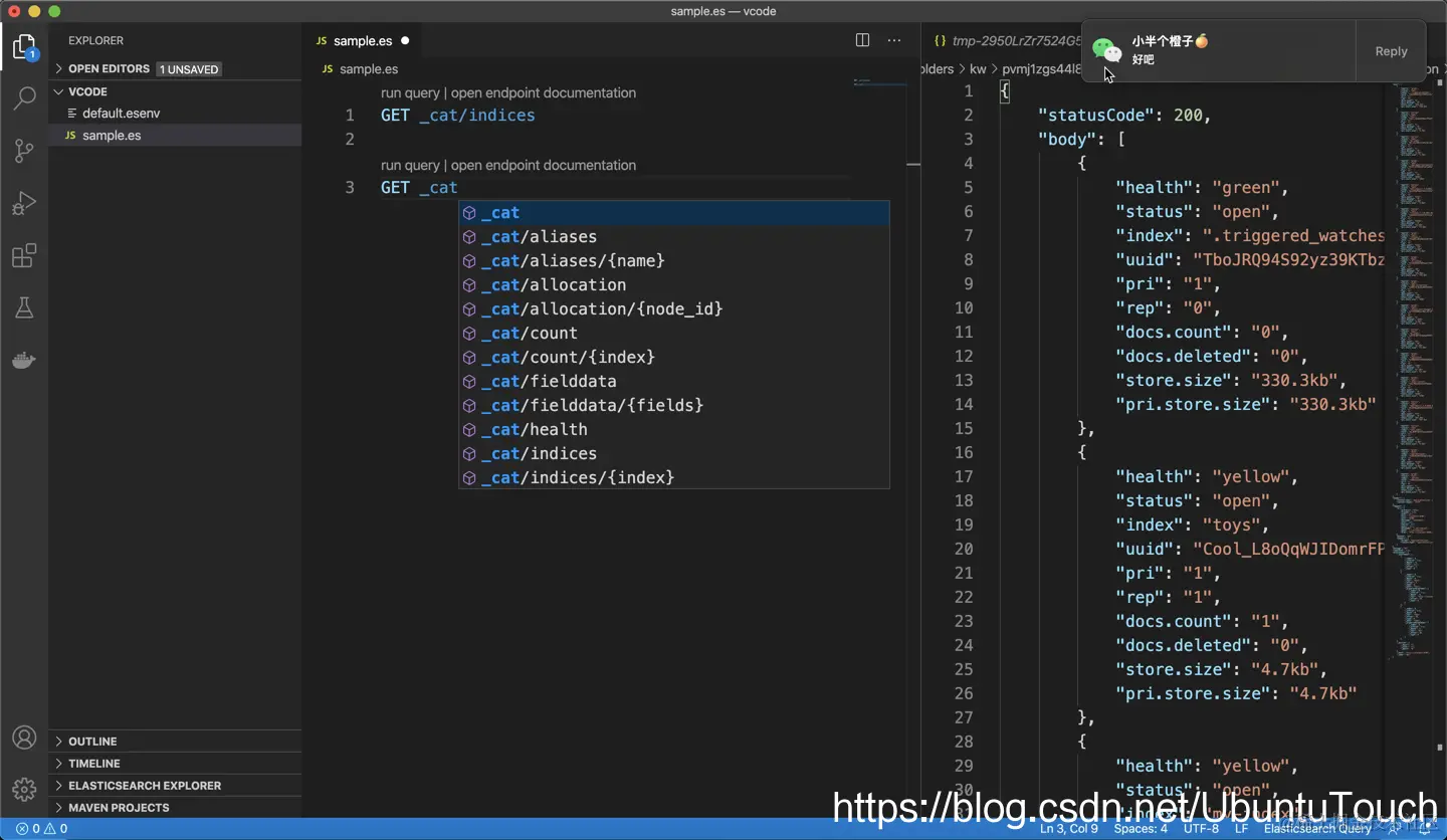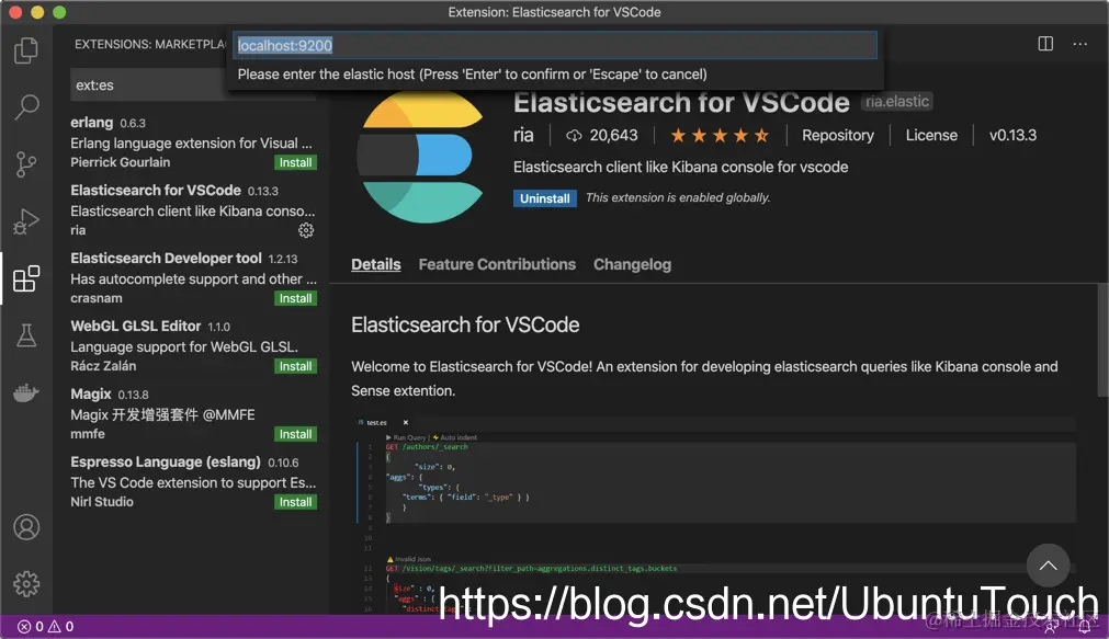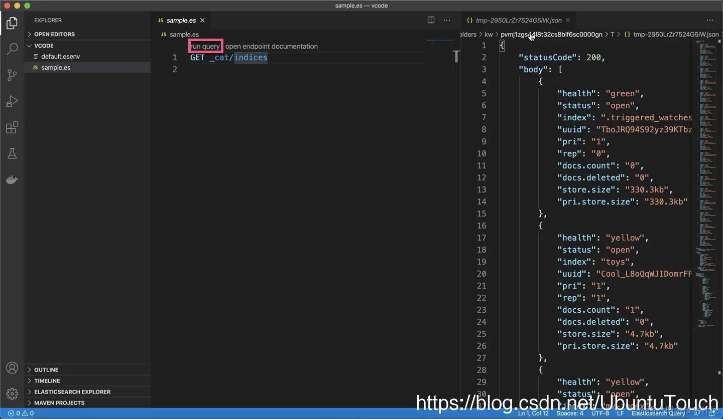 今天我发现我们实际上可以使用 VSCode 运行 Elasticsearch DSL queries。如下是我采用的步骤: