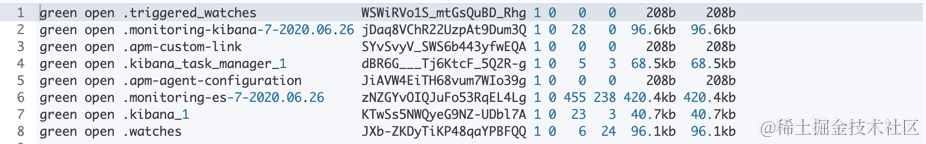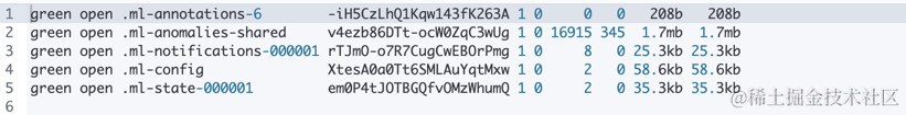 请注意在上面的索引中,以点 . 为开头的索引都是系统索引。是集群创建的索引。在这里,我们看不到任何以 .ml 为开头的索引。为了能得到以 .ml 开头的系统索引,我们需要做如下的查询: