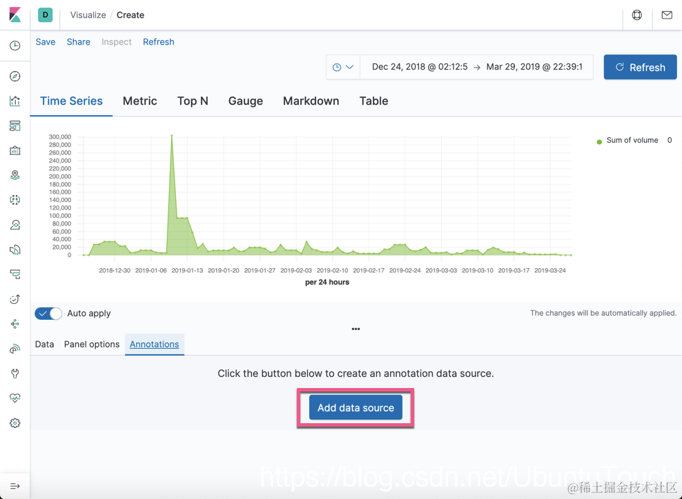现在我们想通过 TVSB 来把日志的数据和 ML 作业的异常数据一起展示。打开 Kibana: