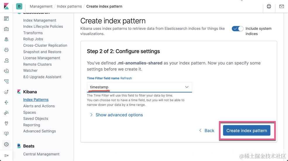 这样我们就完成了 .ml-anomalies-shared 索引的 index pattern 创建。