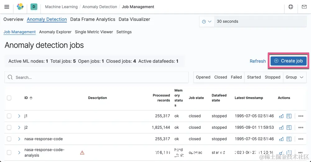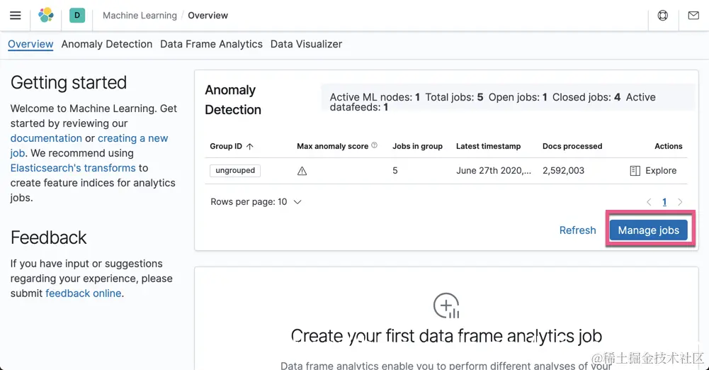 点击 Manage jobs 或者 Create jobs (如果你从来还没有创建过机器学习作业)。