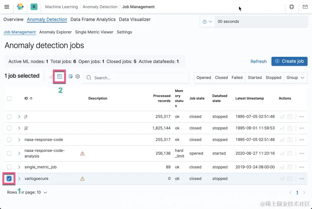这些类别的命名很简单:ML 只会将它们称为 mlcategory N,其中N是递增的整数。 因此,在此示例中,前两行将与 mlcategory 1 关联,第三行将与 mlcategory 2 关联。在现实的机器日志中,可能会生成数千(甚至数万)个类别 由于日志消息的多样性,但是可能类别的集合应该是有限的。 但是,如果类别的数量开始达到数十万,那么很显然,日志消息不是一组有限的消息类型,因此也不适合用于这种类型的分析。