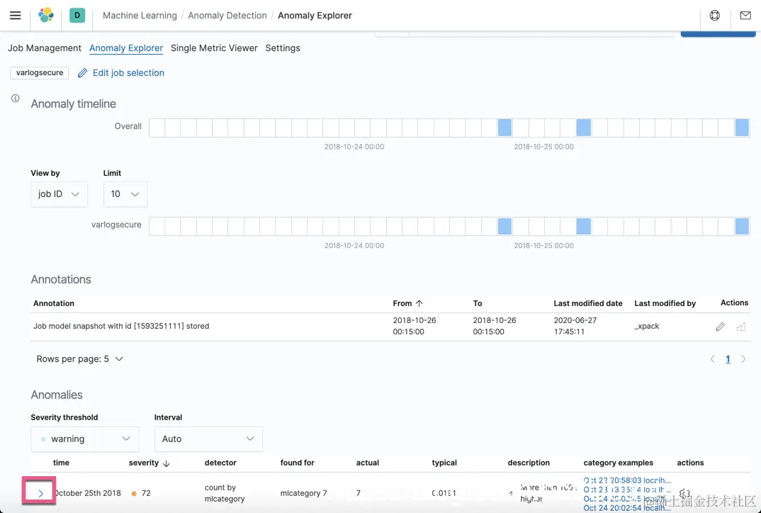 在这里,我们可以看到一些异常出现了。打开上面的 October 25th, 2018 这个异常事件:
