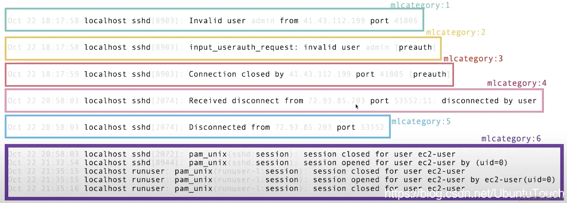 上面是一组 Linux 的日志信息。我们看看 categorization 是如何起作用的。