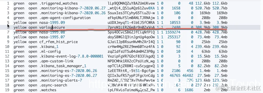 运行完上面的 Filebeat 后,我们可以在 Elasticsearch 中找到最新生成的 varlogsecure 索引: