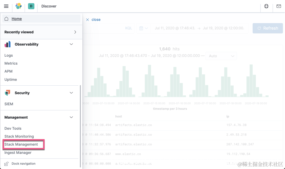 打开 Kibana 的 Stack Management: