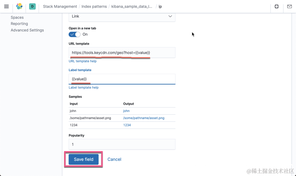 运用 Index pattern 的 formatter 来格式化显示