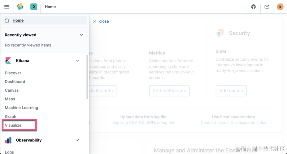 在今天的教程中,我们将使用 Kibana 自带的索引来进行展示。打开 Kibana 界面: