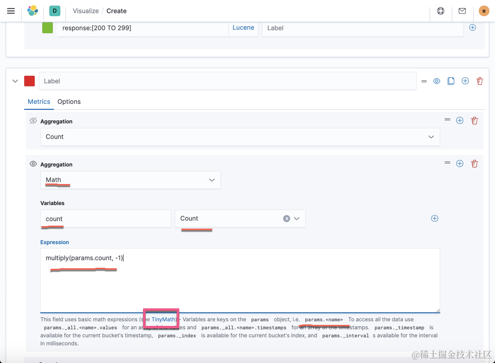 在上面,我们选择了 Math aggregation。同时,我们在 expression 中输入: