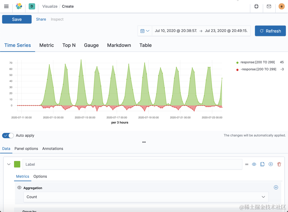 在之前的教程 “Kibana:使用 Script fields 来提高数据的可观测性”,我们通过一种 Scripted field 的方法来提高我们数据的可观测性。我们把一个数据可以把它展示在 Y 的负轴上。这样更好地提高数据的可观测性。在今天的教程中,我们将使用 Math aggregation 来达到同样的效果。