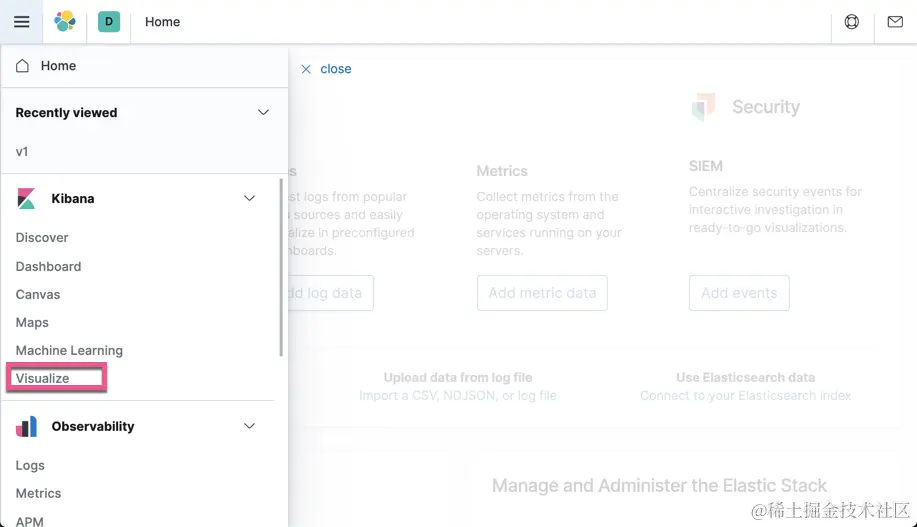 在今天的教程中,我们将使用 Kibana 自带的索引来进行展示。打开 Kibana 界面: