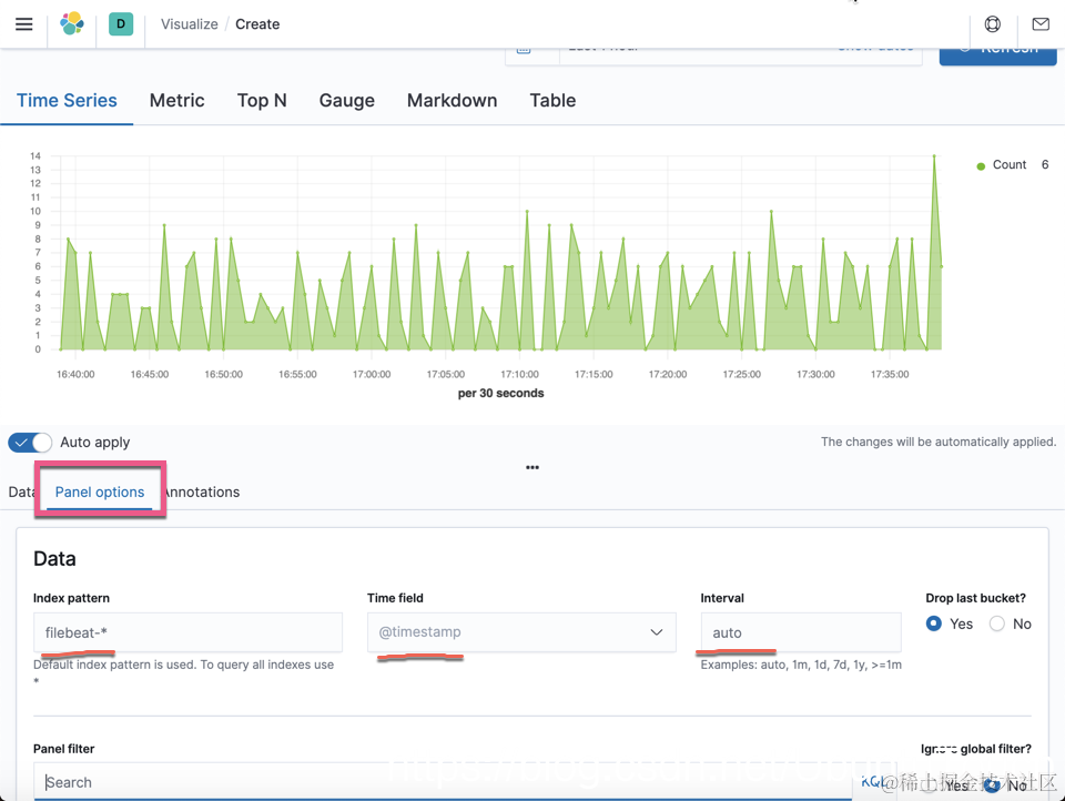 在默认的情况下,它显示了 filebeat-* 的所有文档的数量。