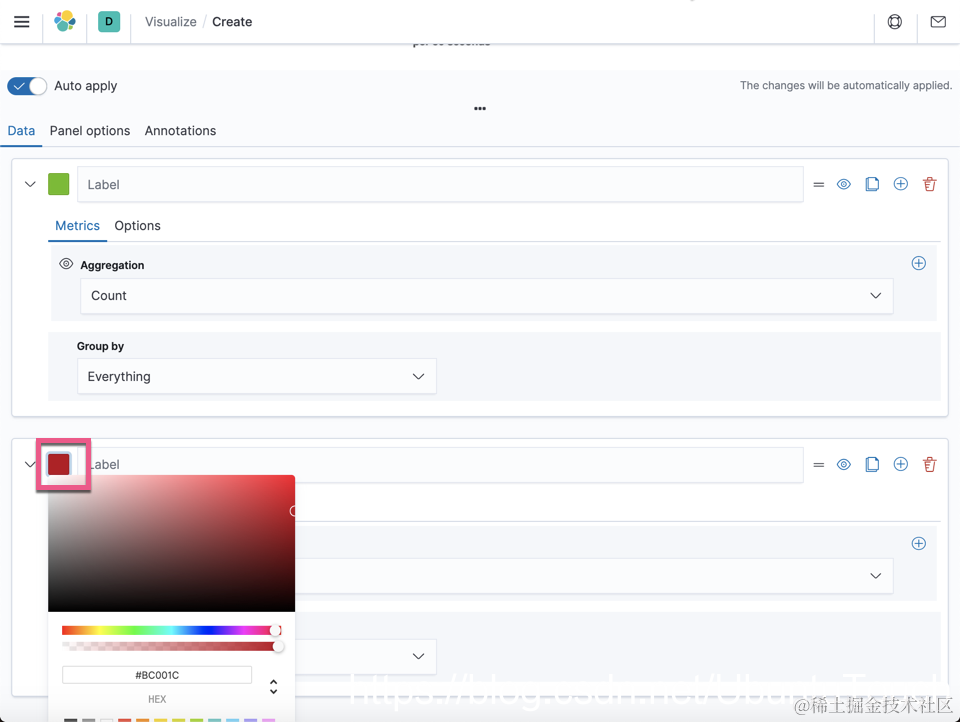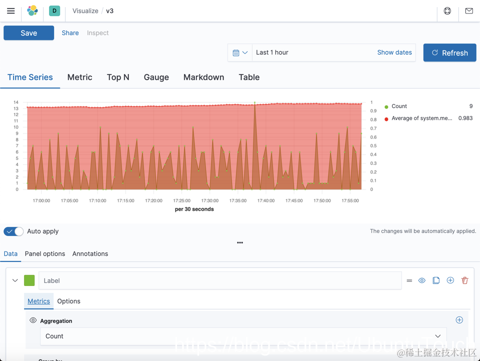 这样,我们就把两个索引模式的图在一个可视化中进行了展示。我们选择了不同的 Y 轴来显示。