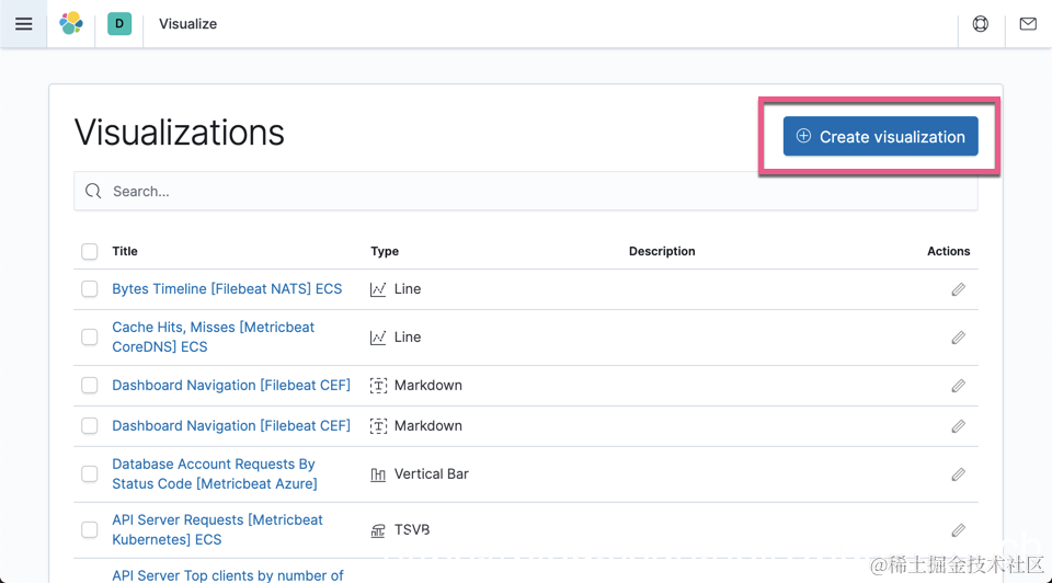 在很多的情况下,我们可以通过 TVSB 的方法来定制我们很多的在标准的可视化中不能有的功能。我们接下来展示如何实现上面的要求。打开 Kibana 可视化: