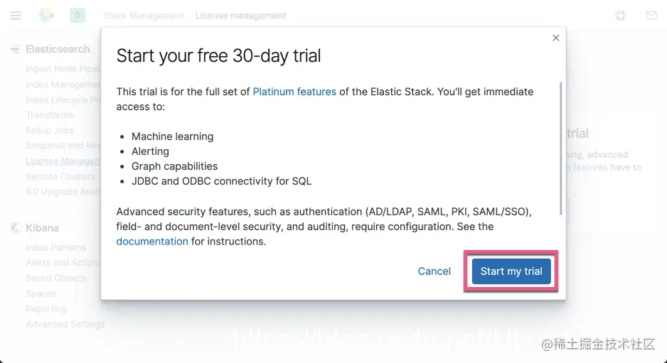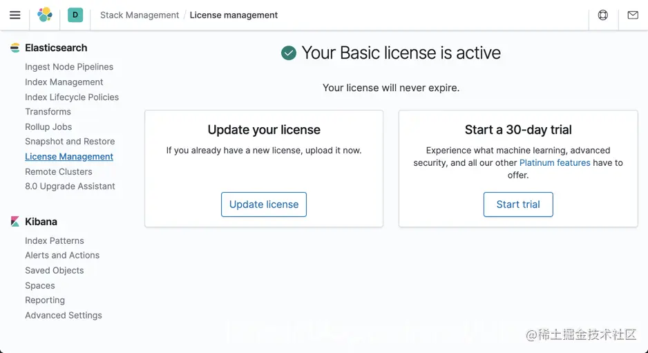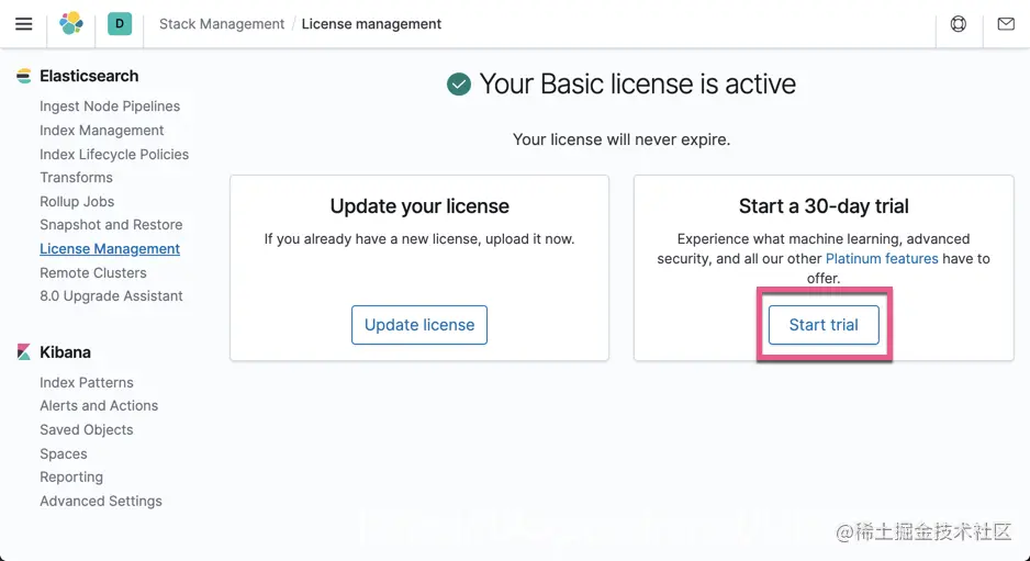 由于机器学习是需要白金版的一个功能,我们需要在本地的部署中启动白金版。