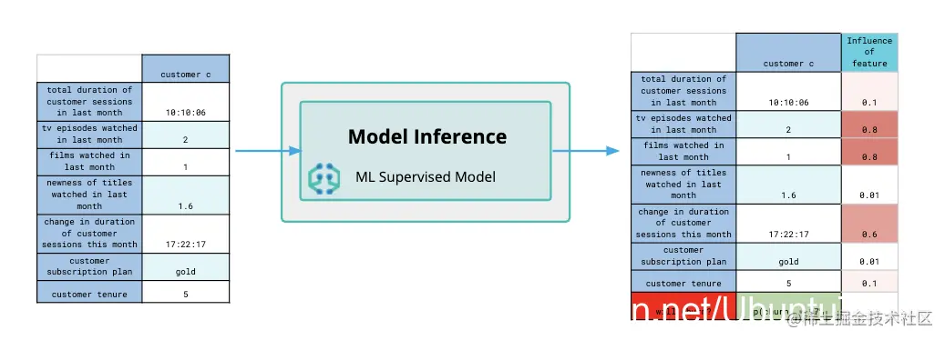 如上所示,影响最终 predicted_value 值有两个重要的指标就是 call_charges 及 customer.international_plan。也就是说说这个人觉得话费太高,而且还有国际长途的套餐。我们可以尝试去修改 customers 的索引,把这个客户的 international_plan 变为 “no"。