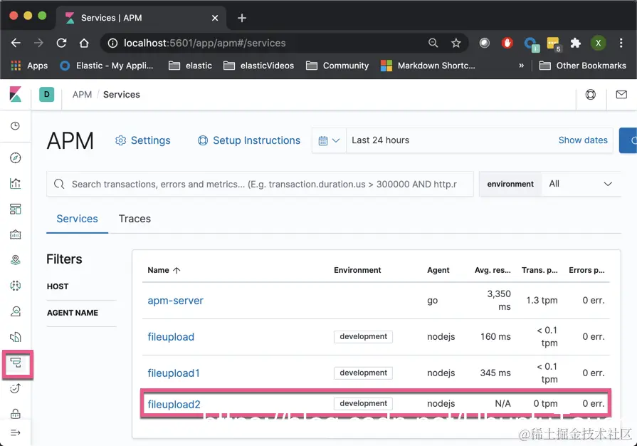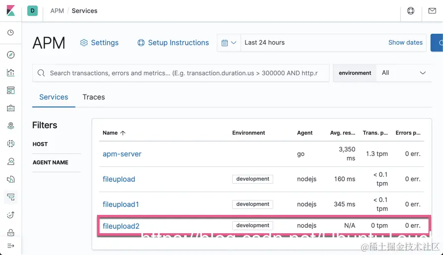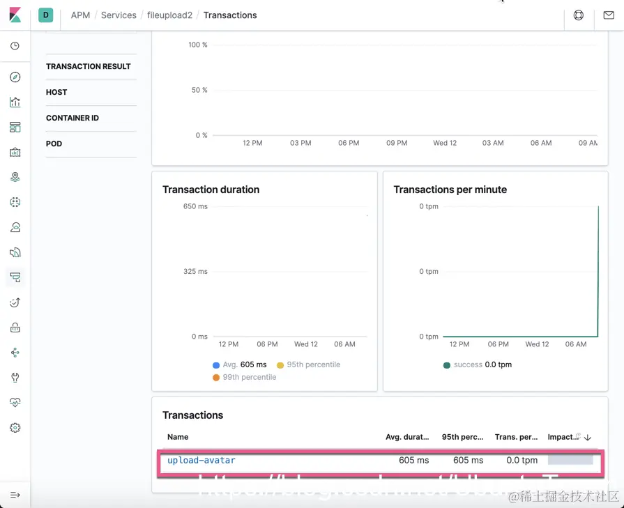 我们回到 Elastic APM 的界面,点击 fileupload2 这个 service: