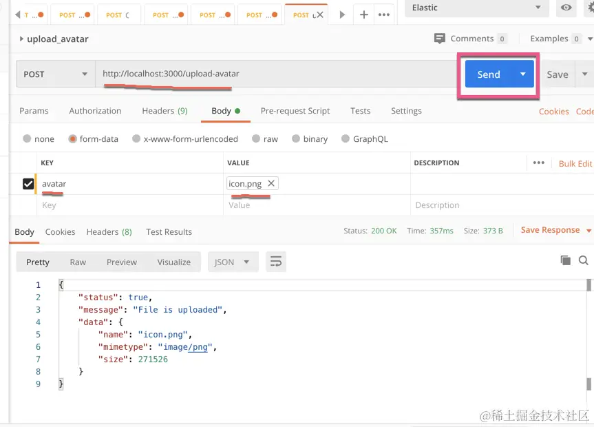 为了能够调用,我们可以使用 Postman 来访问 /upload-avatar 这个接口:
