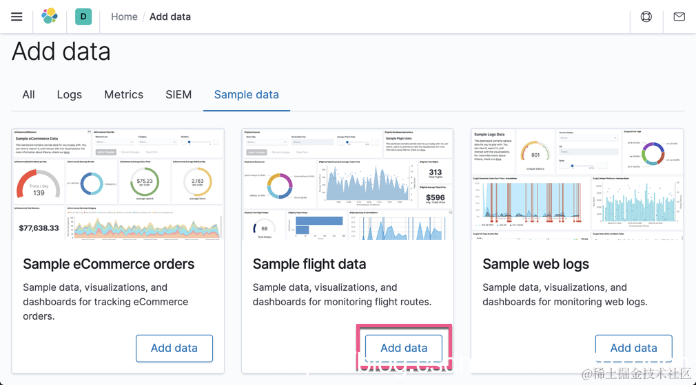 这样我们的样本数据就导入进 Elasticsearch 了。通过上面的操作,我们在 Elasticsearch 中将生成一个叫做 kibana_sample_data_flights 的索引。