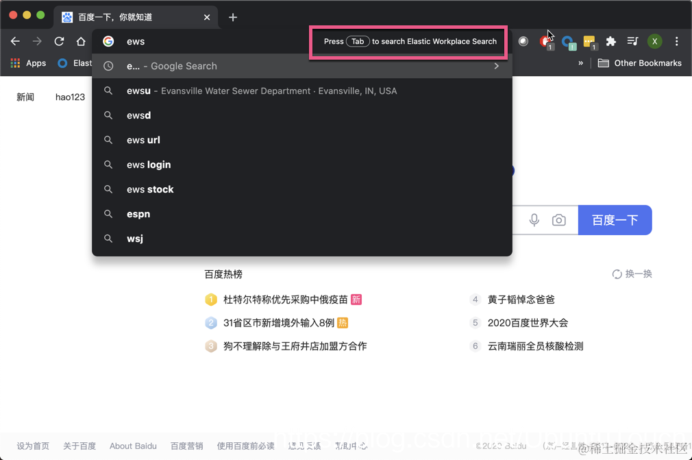 在今天的文章中,我们假设你已经创建好了自己的 Elastic Workplace Search 网站,并已经投入使用。我们可以通过 Chrome 浏览器的设置,很方便地在我们的搜索框中进行使用。