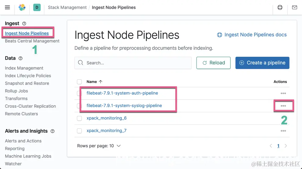 在上面,我们可以看到有两个 ingest pipeline 同时被创建。我们可以点击右边的三个点进行编辑: