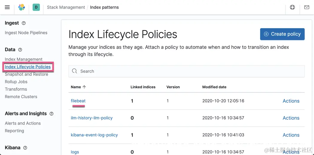 同时它也生产一个相应的 Index Life Cycle Management policy: