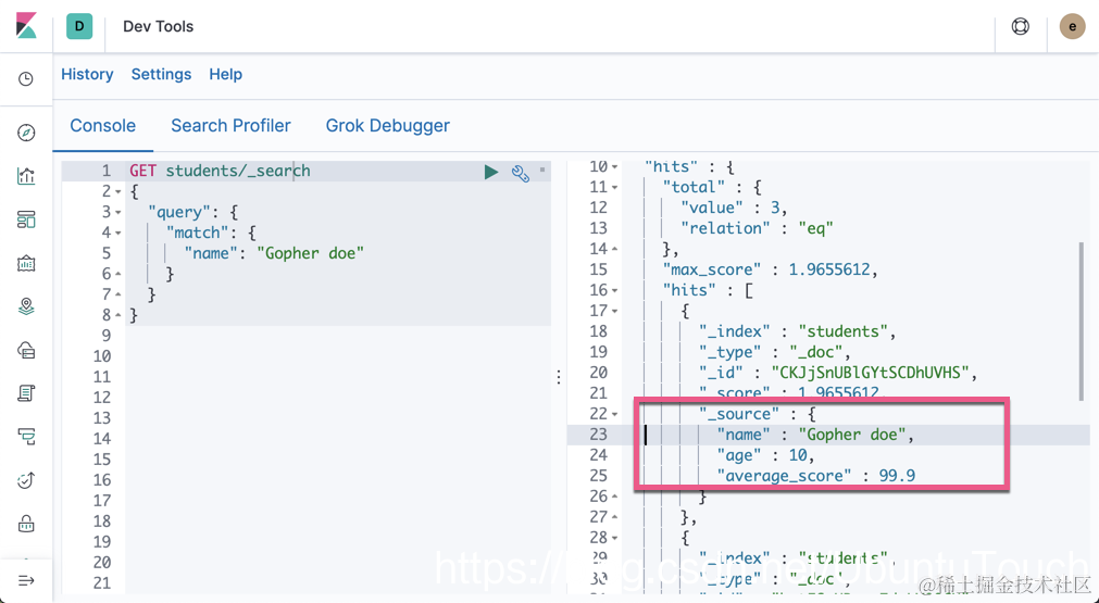 上面将返回你的查询以及与你的相应查询匹配的学生数据。 现在,恭喜你你已经正式成为一名搜索工程师!
