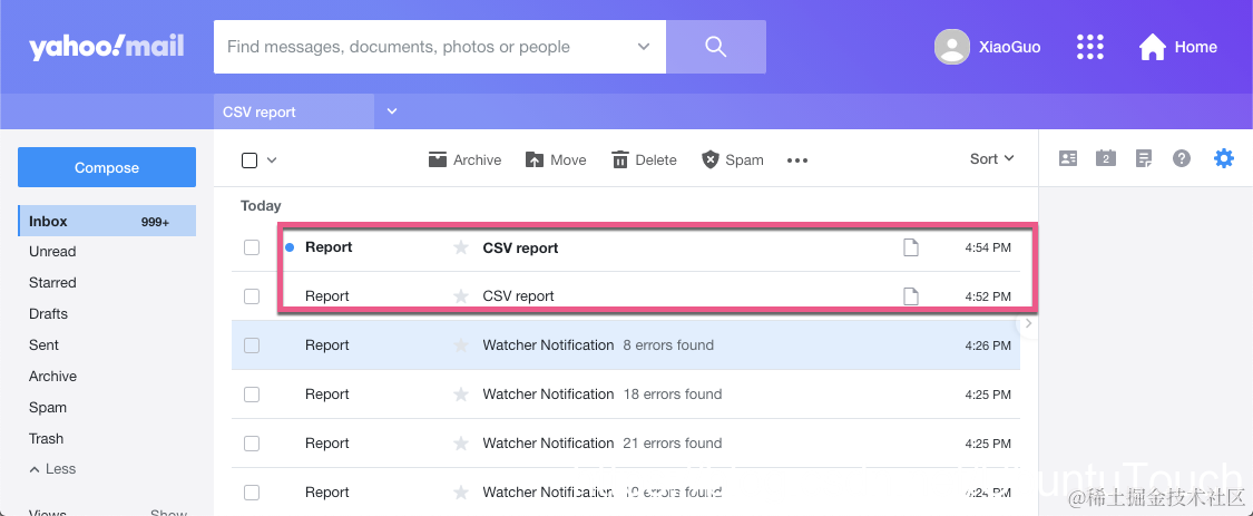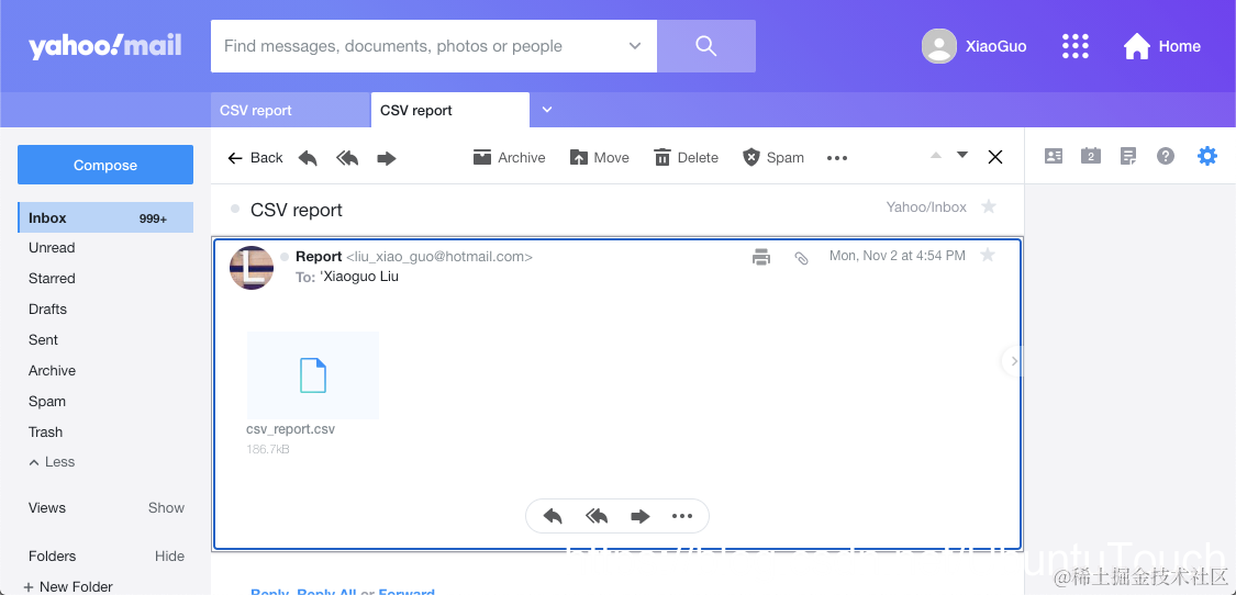 我们可以看到一个叫做 CSV report 的文件发送到我们的邮件了。我们可以打开这个邮件:
