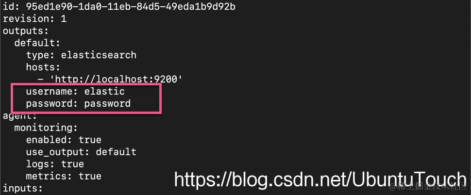 - 在配置文件的输出部分中更改 Elasticsearch 用户名和密码: