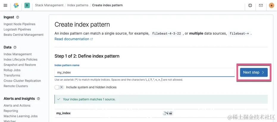 首先,我们必须为 my_index 来创建一个 index pattern,以便能够在 Discover 中进行使用:
